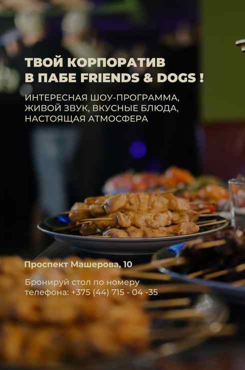 Friends&dogs Pub (Френдс&догс Паб) расположен в Советском районе Минска, в нескольких минутах ходьбы от станции метро «Площадь Победы». Бар находится в цокольном этаже исторического здания на пересечении проспекта Машерова и улицы Красной. Это пространство создано для тех, кто ищет атмосферное место для встреч, отдыха после насыщенного дня и душевного вечера в компании друзей.